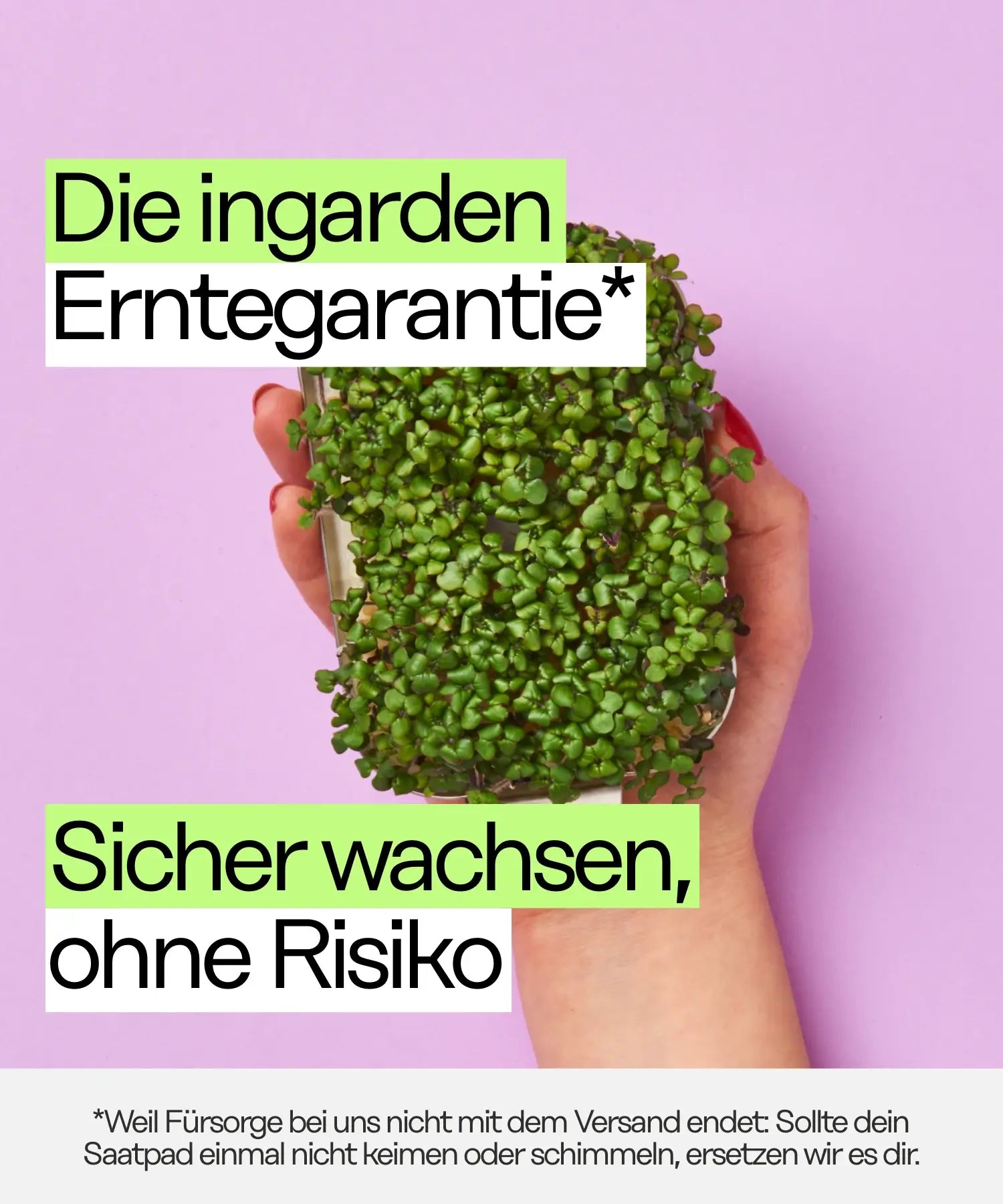 - Ernte-Garantie: Keimt dein Saatpad innerhalb von 7 Tagen nicht, ersetzen wir es dir – unkompliziert.