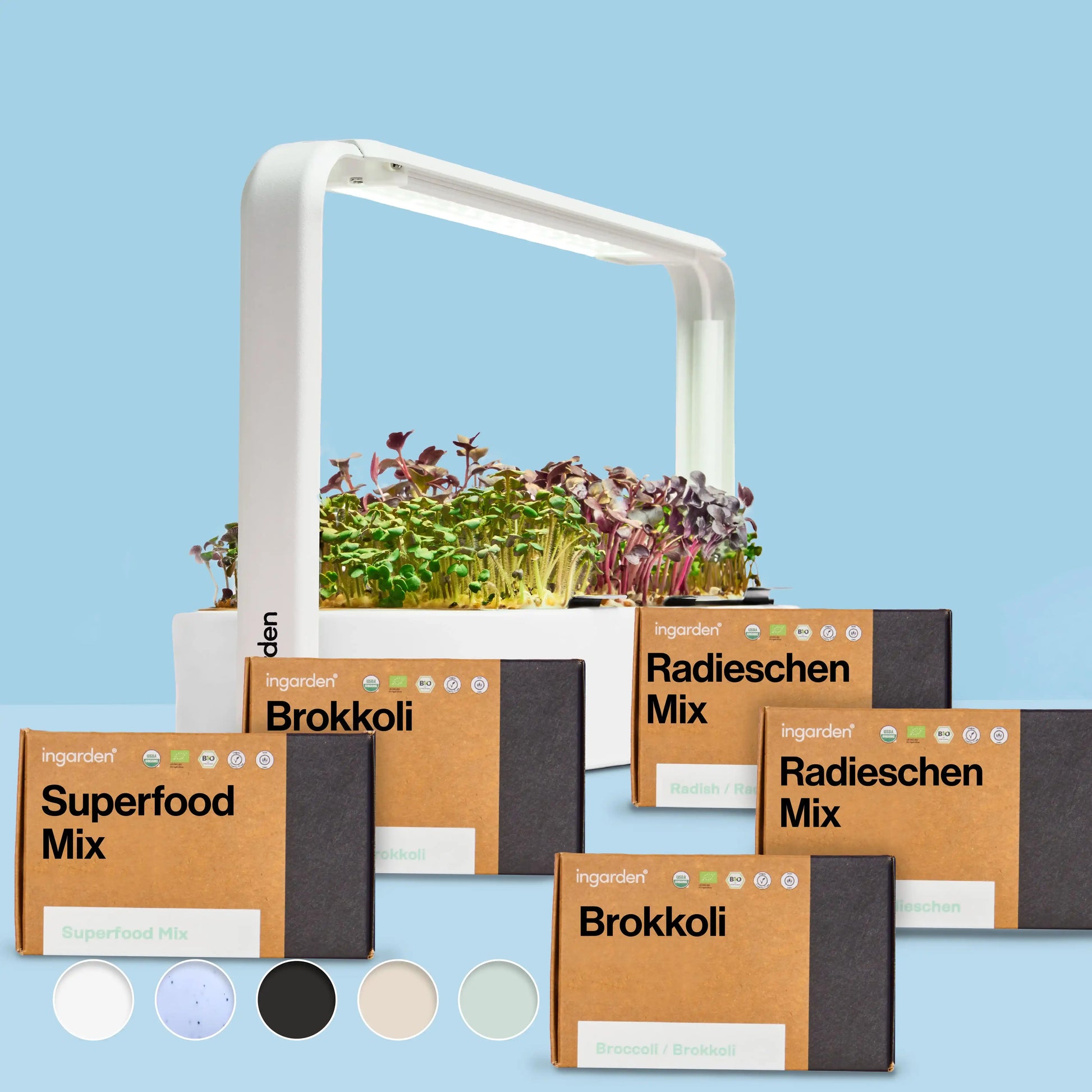 Wähle deine Farbe, werte mit deinem ingarden deinen Raum auf und tauche ein in die Freude am Gärtnern im Haus.