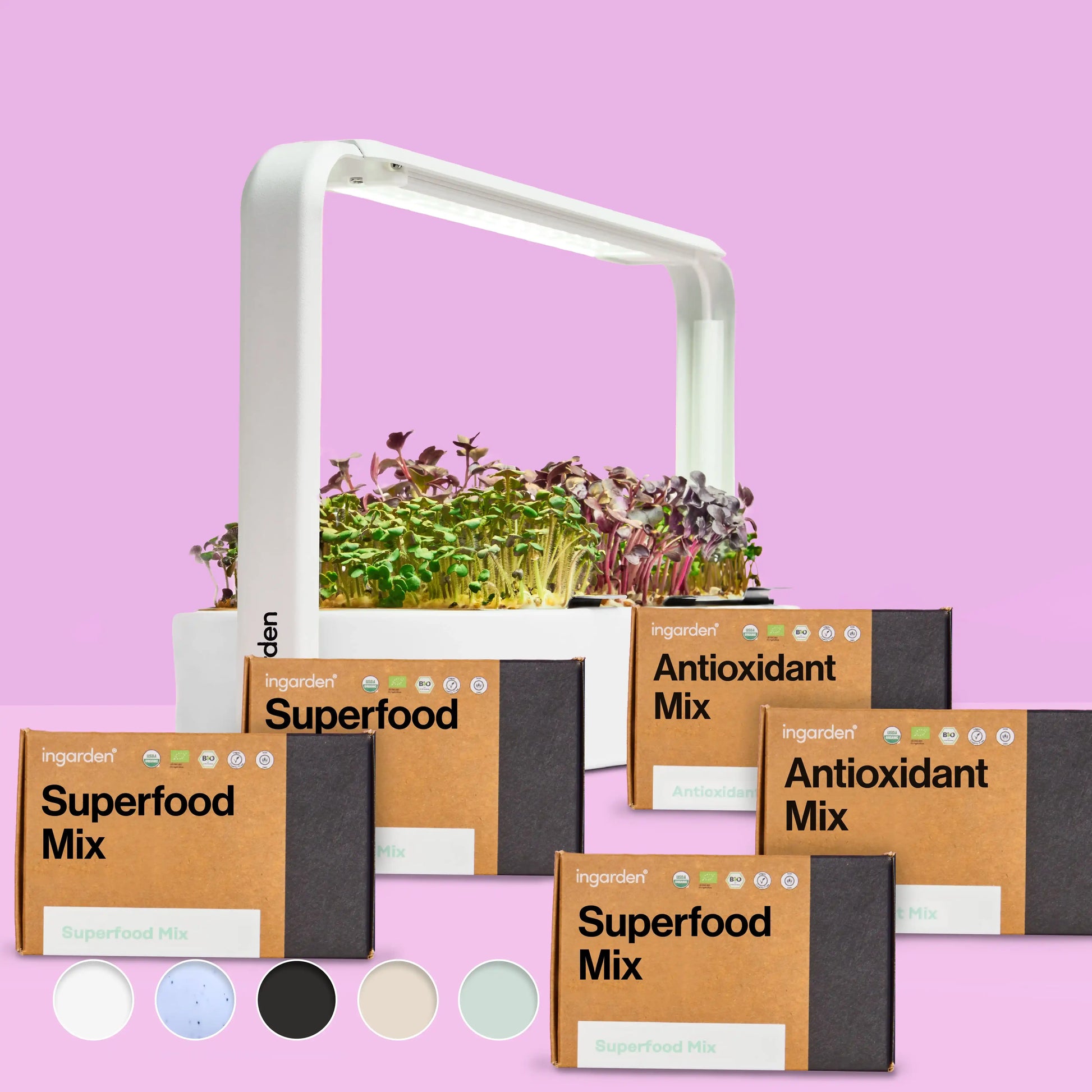Zieh dir Bio-Microgreens mit bis zu 40x mehr Nährstoffen als herkömmliches Gemüse – im designprämierten Smart Garden. Das Set enthält alles, was du zum Wachsen brauchst.