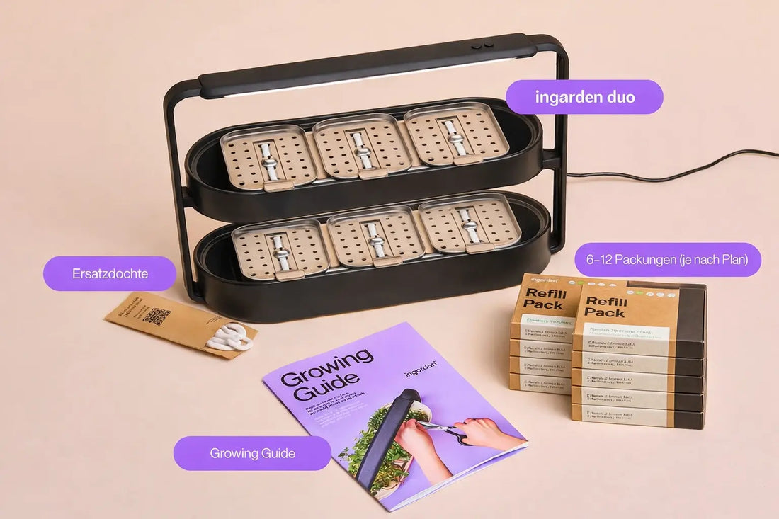 • 36x bzw. 60x Bio-zertifizierte Microgreen-Pads (je nach Plan)