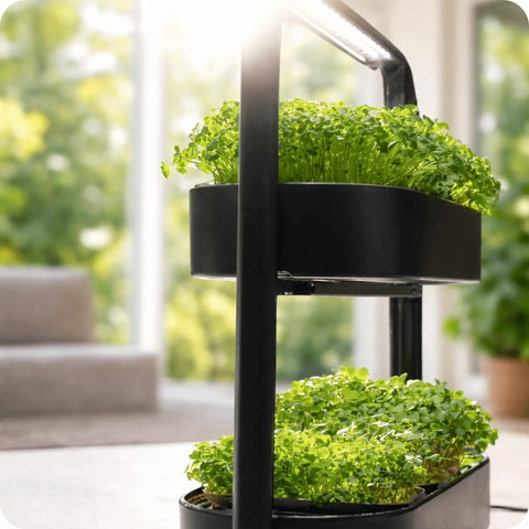 Das spezielle LED-Licht von ingarden liefert genau die Lichtfrequenzen (v. a. Blauanteile), die deine Microgreens für gesundes Wachstum und Chlorophyllbildung brauchen.