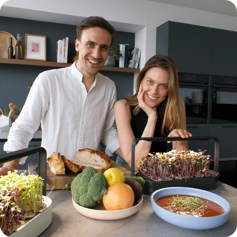 Tess war viele Jahre als Model unterwegs, Christian ist Ingenieur mit einer Liebe für gutes Design. Gemeinsam träumten wir von einem ehrlichen, gesünderen Leben – und fanden auf einem Farmers’ Market in New York Microgreens: winzige Pflanzen, 40-mal nährstoffreicher als Gemüse, lebendig und kraftvoll.