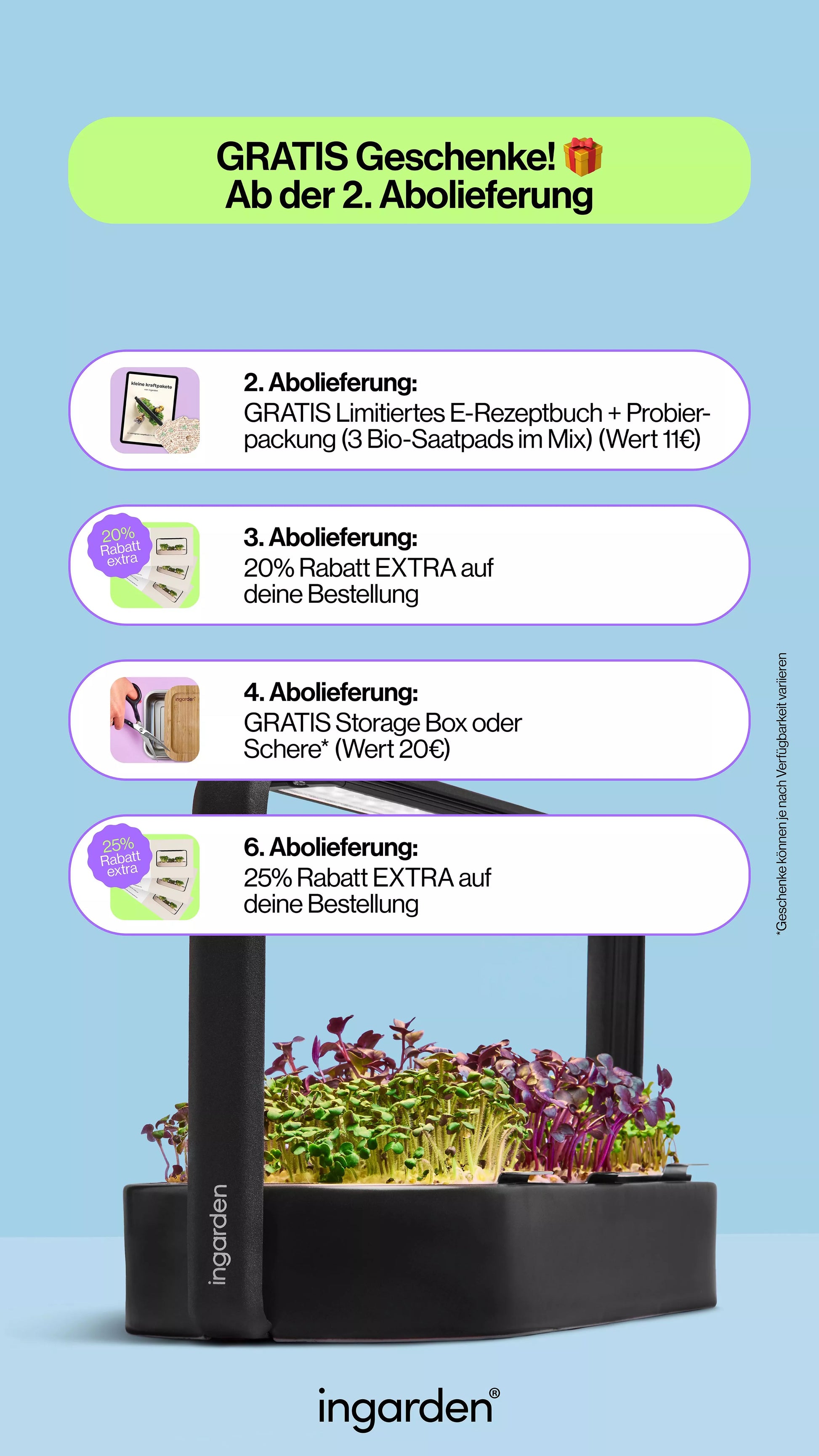 - Ab der 2. Lieferung erhältst du kleine Geschenke zu jeder Abo-Bestellung ab 20 €
