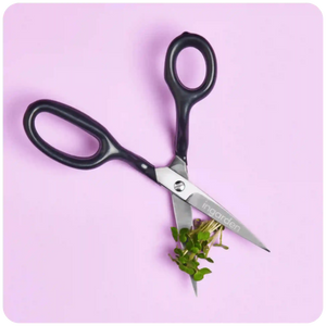 Schere mit gebogenem Griff aus rostfreiem Stahl, perfekt für die Ernte von Microgreens aus deinem ingarden.