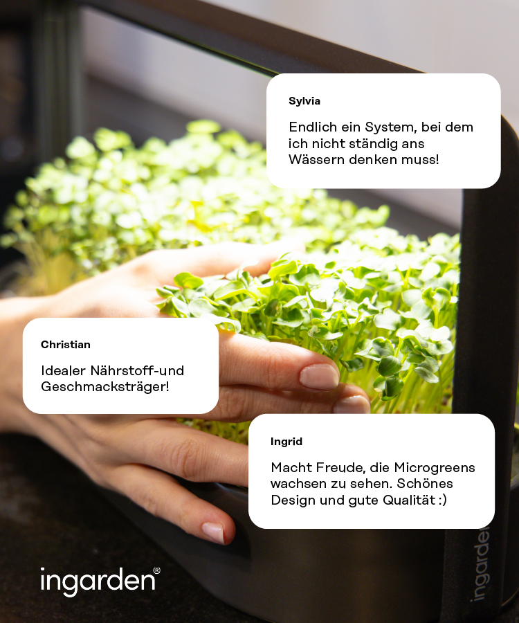 Die Microgreens von ingarden sind aus biologischem Anbau und frei von Pestiziden, Herbiziden und Gentechnik. Alle unsere Microgreens stammen ausschließlich aus vertrauenswürdigen Quellen und haben eine garantierte Keimrate von 95%.